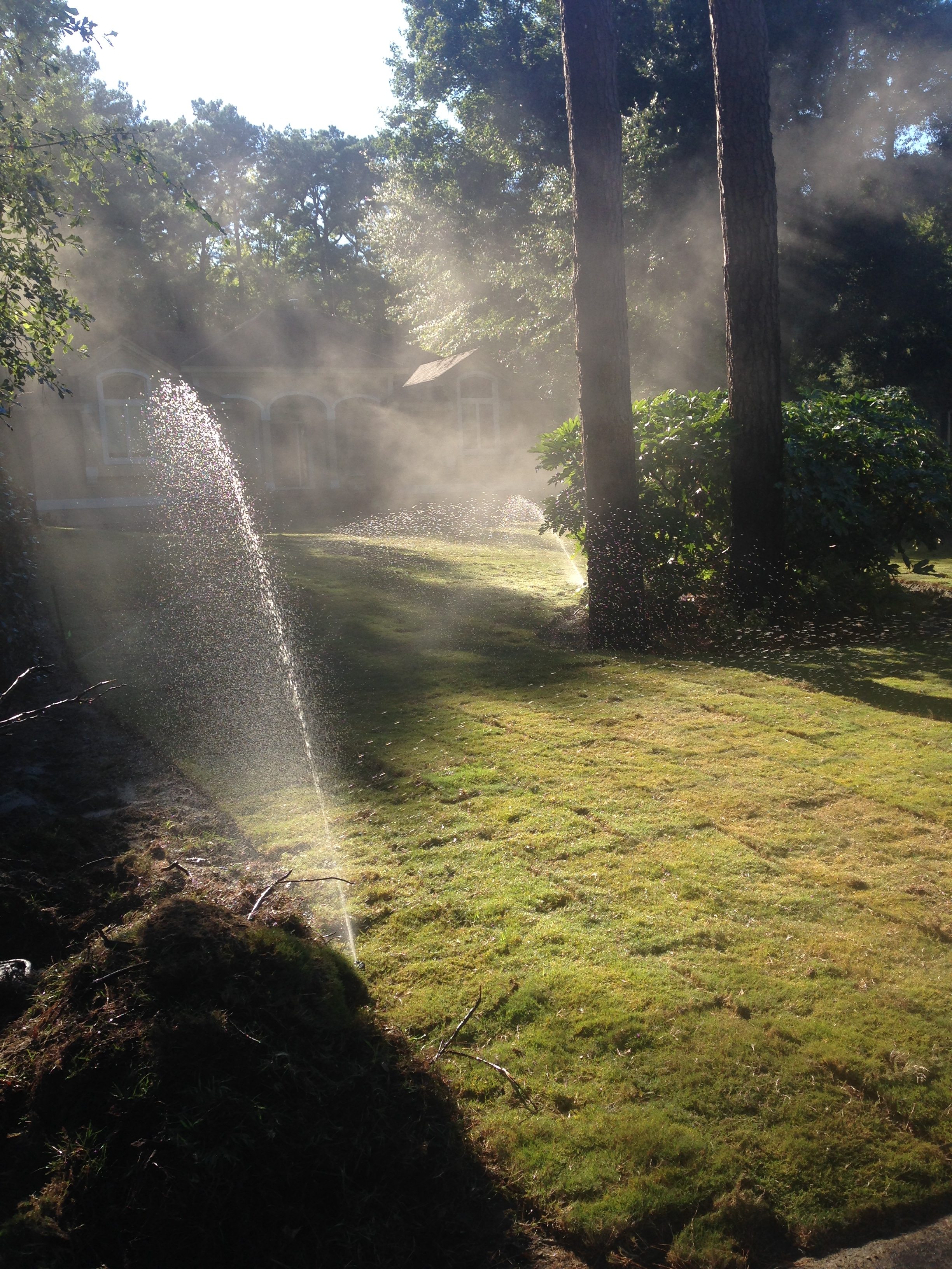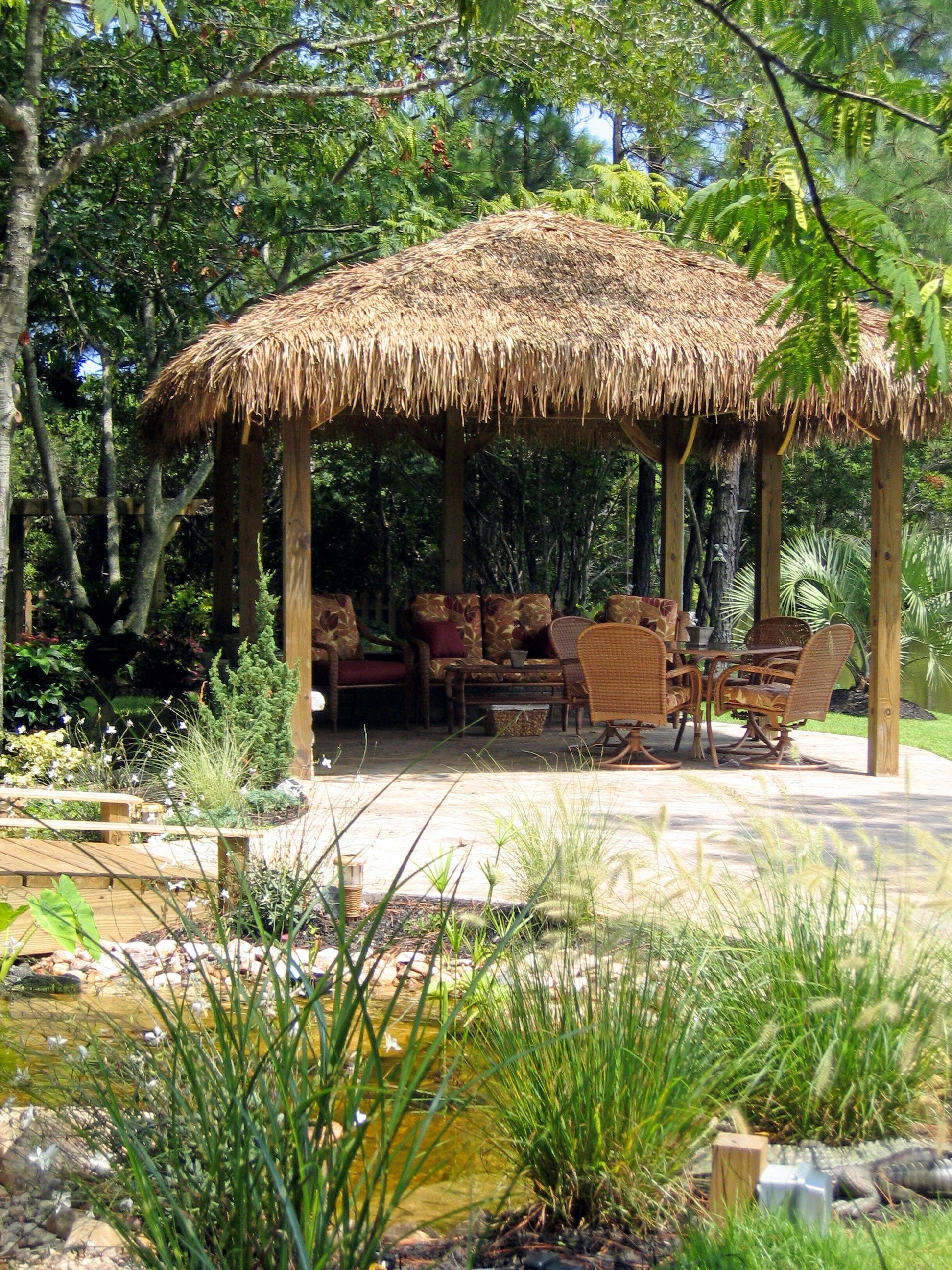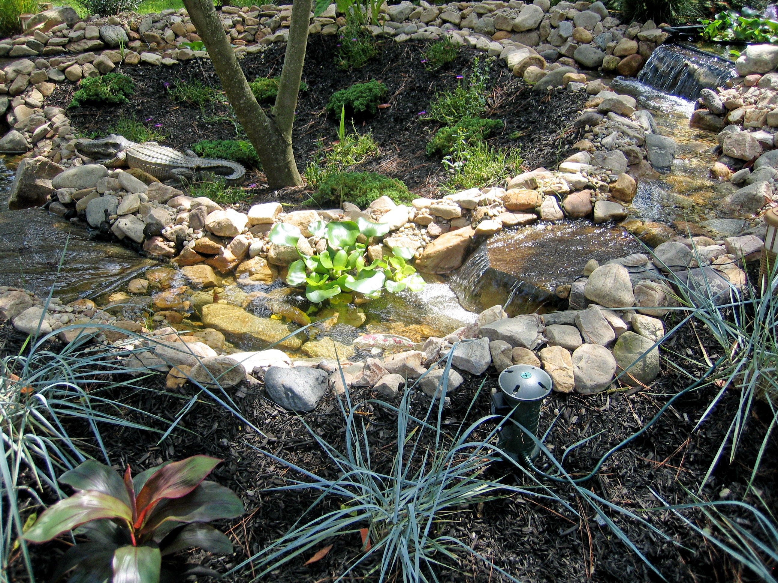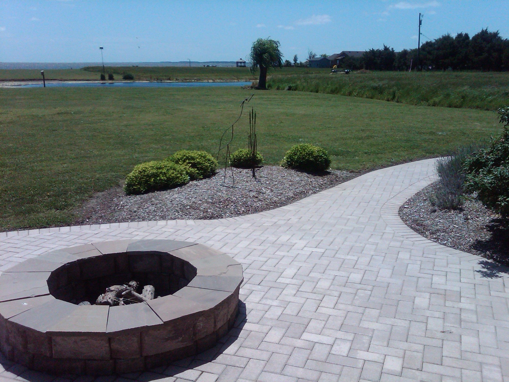 Water features, ponds, decorative concrete, hardscaping, and irrigation.